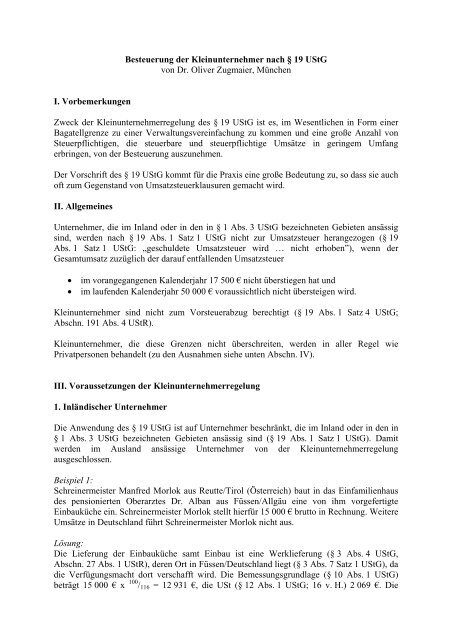 Kleinunternehmerregelung gemäß § 19 ustg.